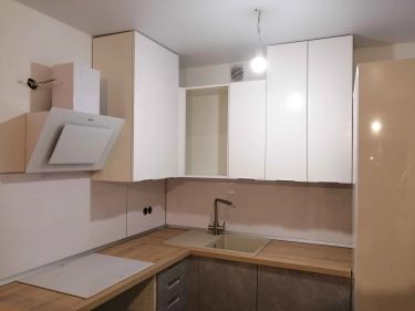Соберём каркасы, навесим шкафы, дверцы и фурнитуру. Всё отрегулируем. Установим, мойку с сифоном и смесителем.